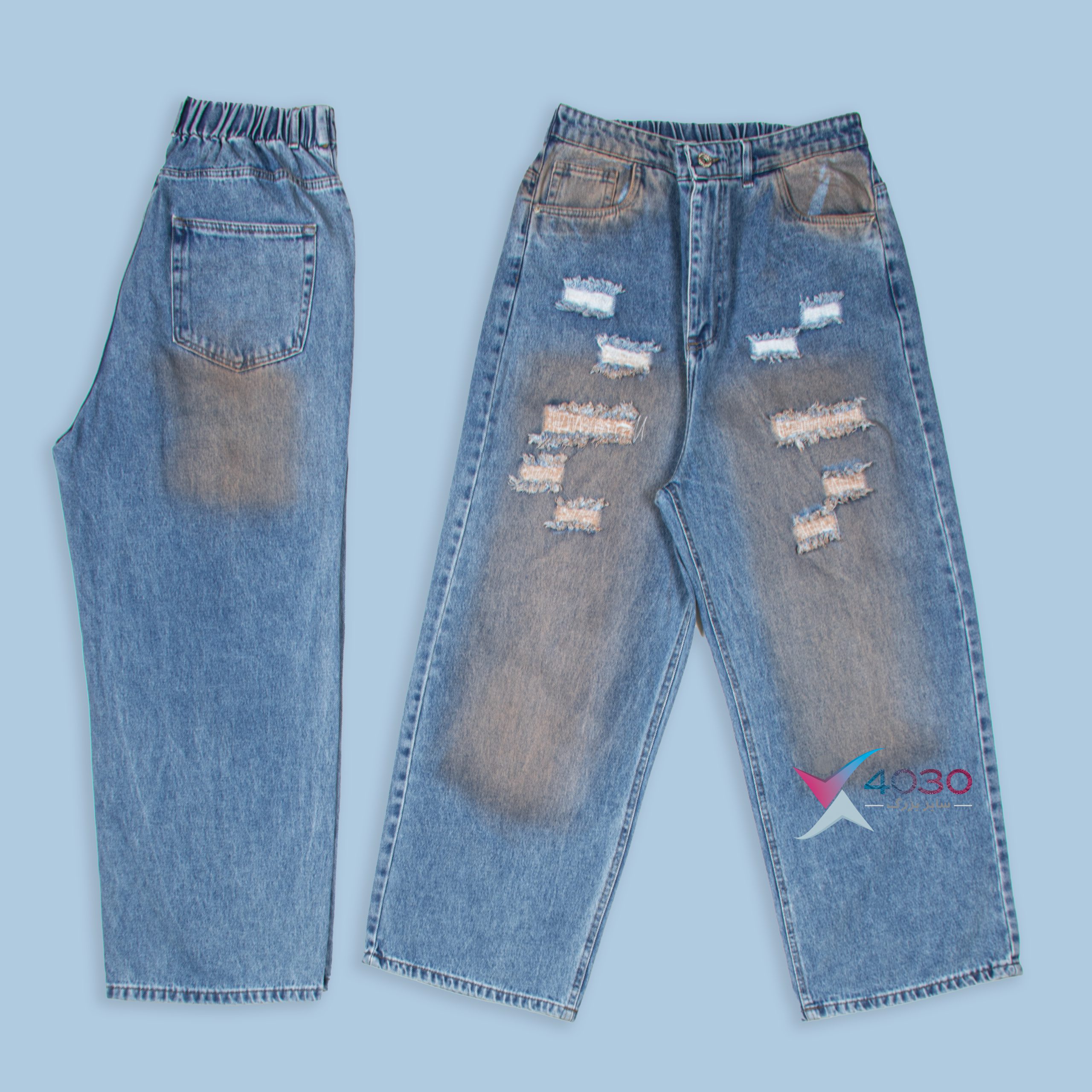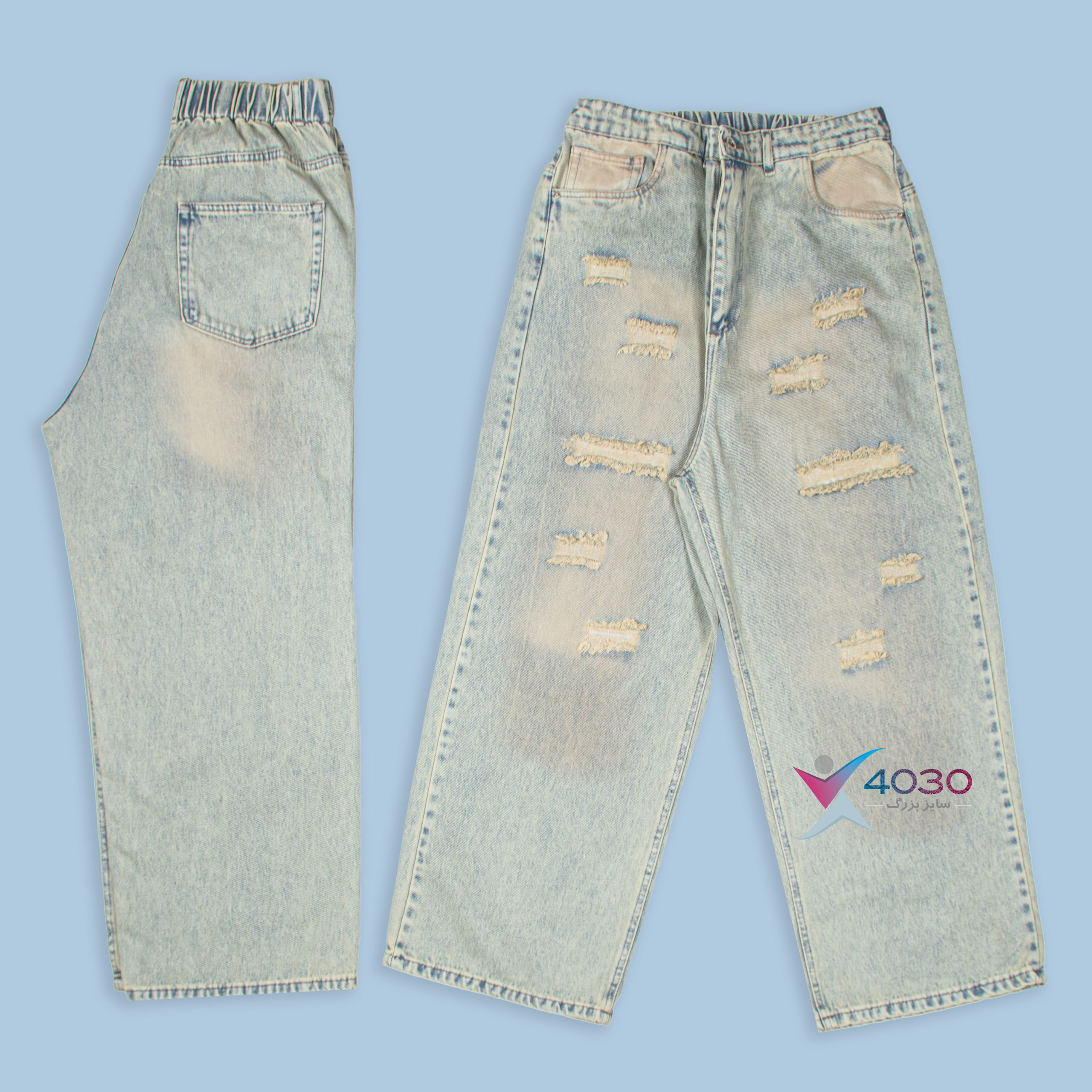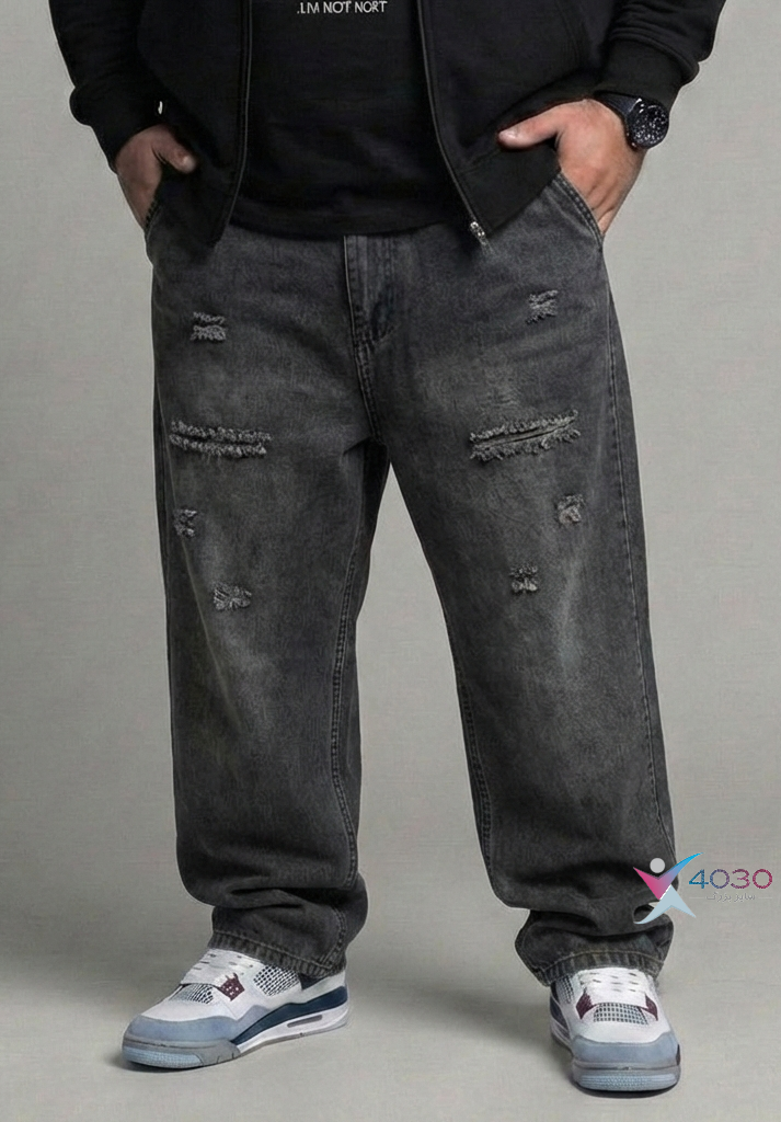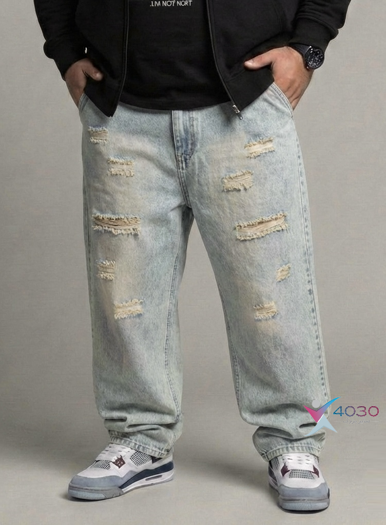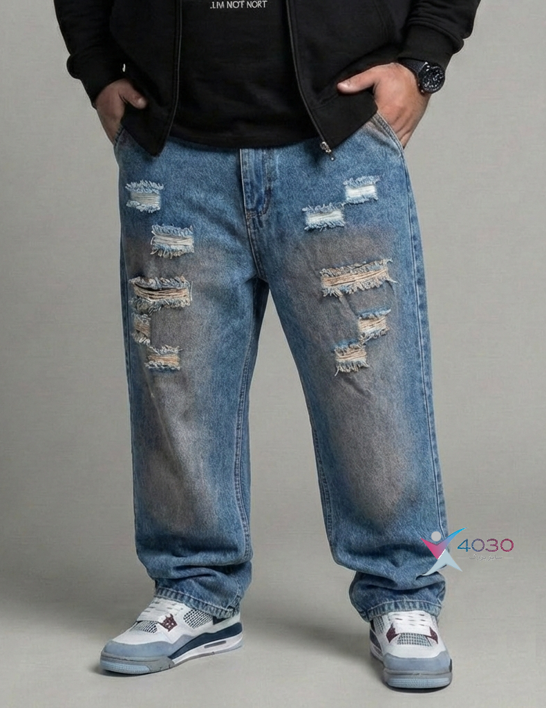 شلوار جین زاپدار کمرکش بگ استایل سایزبزرگ ( 4526 )